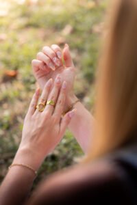Je conçois des press-on nails faits main, pensés pour les filles pressées mais stylées. Ici, tout est fait avec soin, passion… et une touche de douceur.